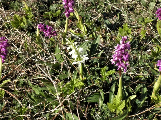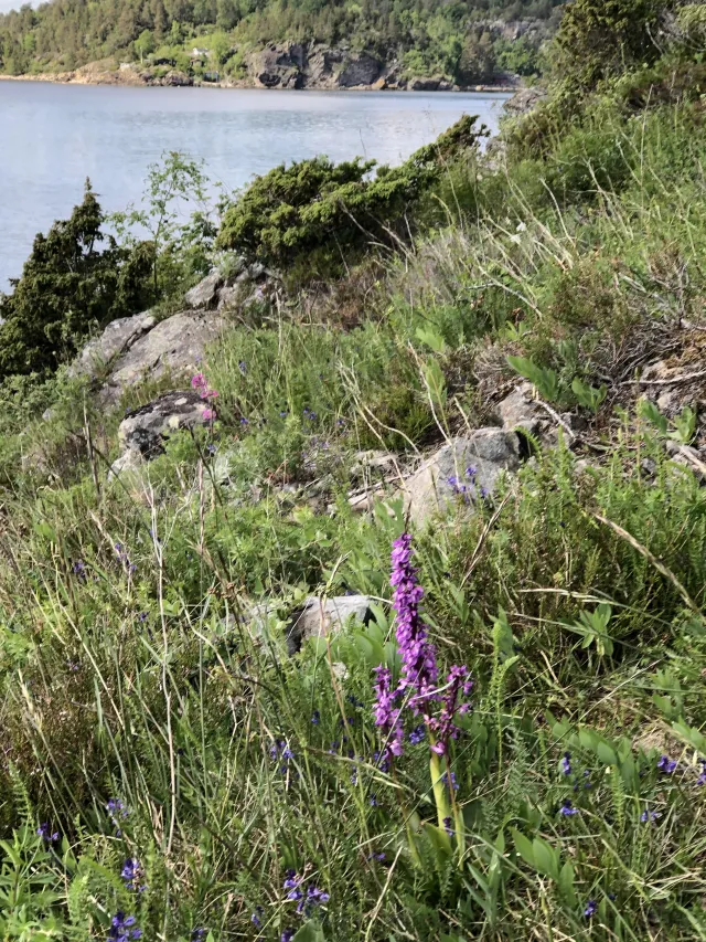 Vårmarihand i brattlende på kalkgrunn på Munken på Jeløya i Moss.