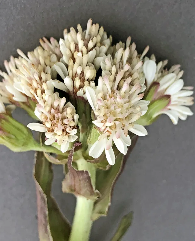 Kronene er kvite eller gulkvite, og alle er røyrforma hos kvitpestrot. Korgene er kortskafta og sit i halvskjerm eller ein kort klase.