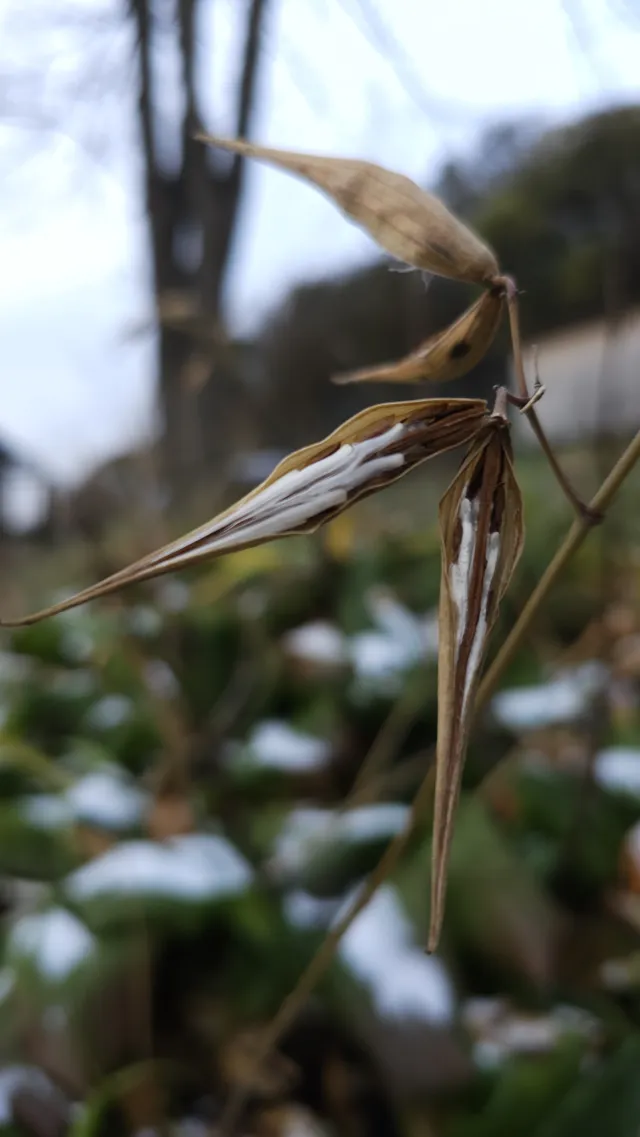 Frukt som er i ferd med å sprekke opp for å overgi frø med frøull til vinden.