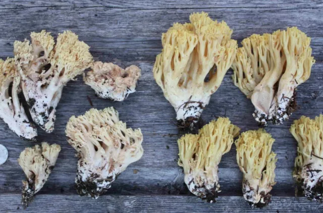 Bleke og mer sitrongule varianter av sitronkorallsopp.