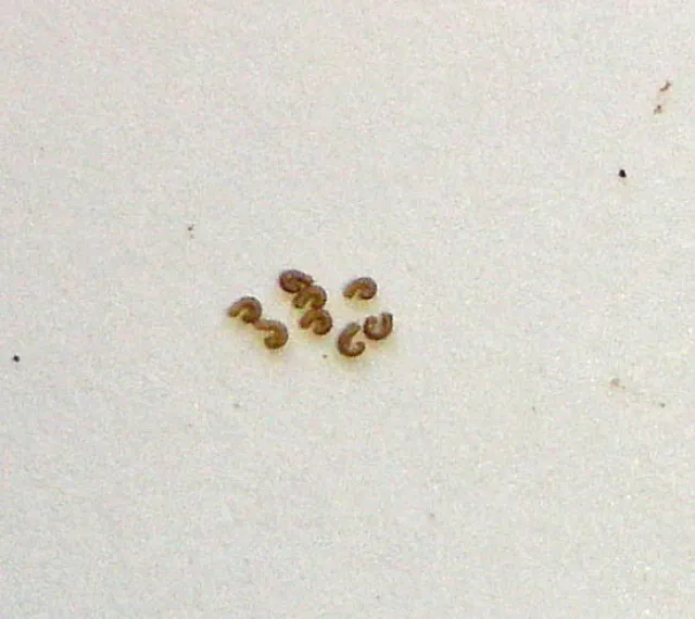 Korsevjeblom er den eneste norske arten som har sterkt bøyde frø. Steinkjer, Snåsavatnet (Nord-Trøndelag).