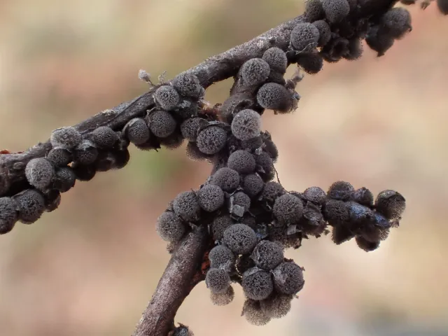 Artsdatabanken: Klyngesnøhagl Lamproderma spinulosporum Mar. Mey., Nowotny & Poulain