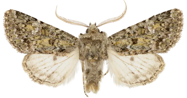 Arten kan lett forveksles med mange andre brokete nattfly.