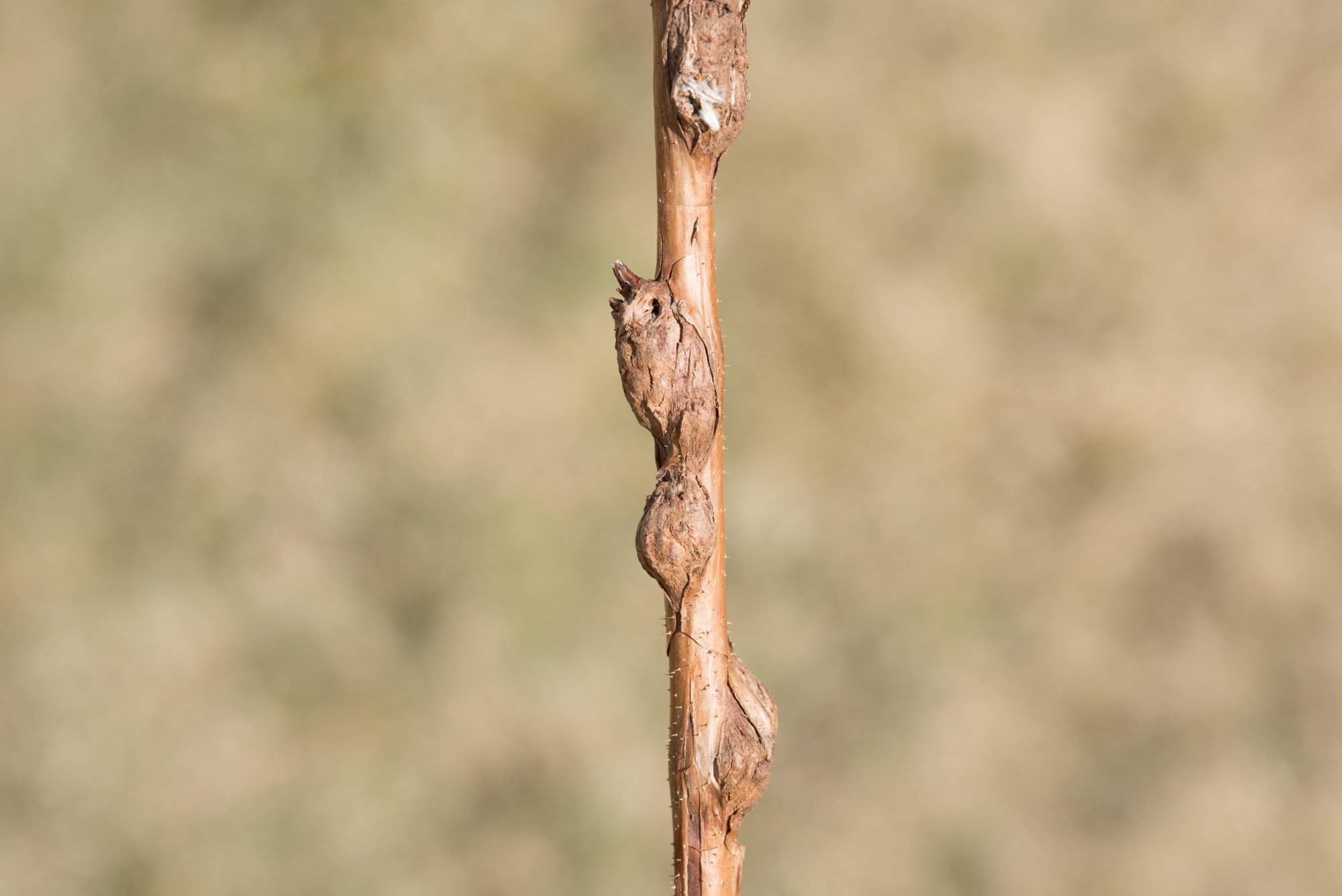 Arten danner store, vedaktige galler på stenglene til bringebær og andre arter i bjørnebærslekta.