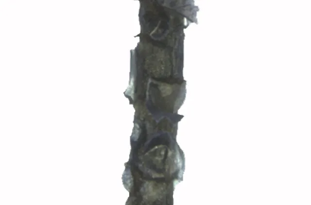 Stengelblad og greinblad til venstre. Greinknippe til høyre.