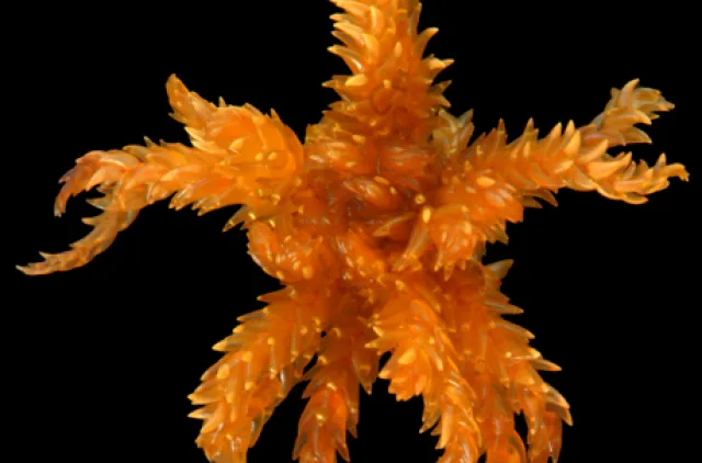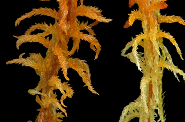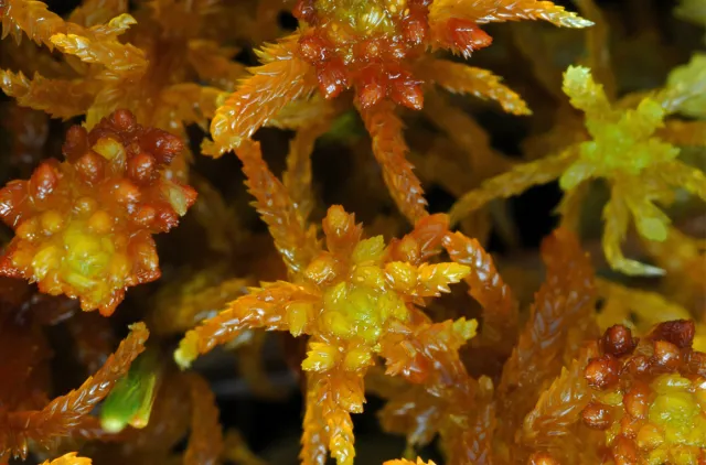 Hannplantene skiller seg utseendemessig fra hunnplantene om høsten med korte, oppsvulma og mørkoransje antheridiale greiner i hodet.