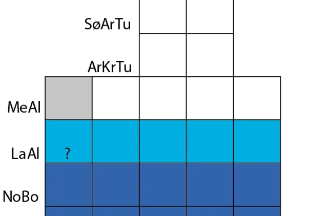 Fastlandet: VåS: Geogen; myrflate, åpen myrkant, (myrskog). Jordvannsindikator, mangler på nedbørmyr. Intermediær kildemyr i NoBo og LaAl. FaS: Kalkrikt fuktberg.