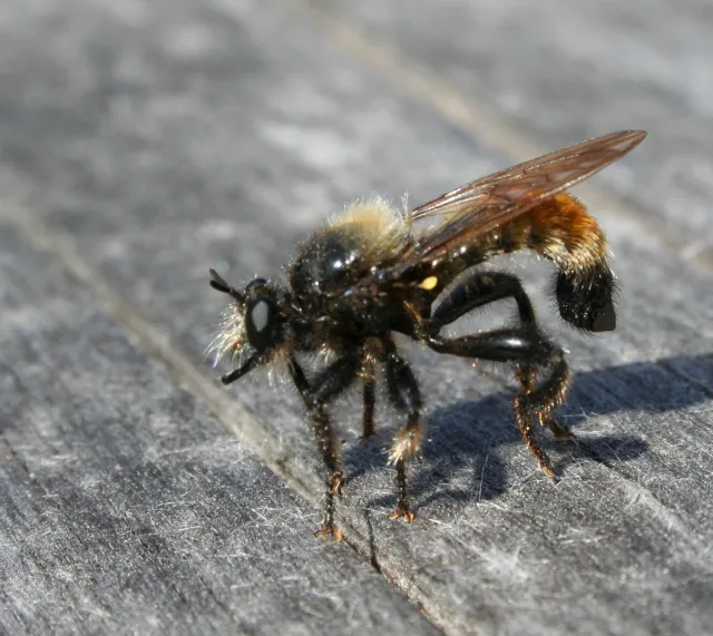Gulhåret rovflue Laphria flava er en stor og meget karakteristisk rovflue som etterligner en humle eller en bie. Denne rovfluen er forholdsvis vanlig i norsk fauna og man kan ofte observere den på soleksponerte og varme områder i barskog. Dette er en av våre største arter innen familien rovfluer. Larvene lever i død ved og arten trives best i områder med mye død ved og gammel skog. Gulhåret rovflue er utbredt over store deler av Sør-Norge med kun få funn nord for Trondheim.
