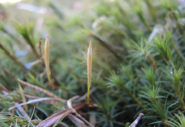 Ung sporofytt med hette. Hetten er dannet av gametofytten og beskytter den unge sporofytten, mens sporofytten utvikler seg fra en zygote mellom en spermatozoid og en eggcelle.