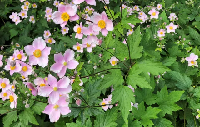 Blomane er store, med 5–6 kronbladliknande begerblad som er kvite til rosa.