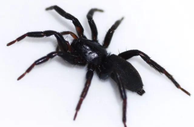 Sotsvartedderkoppen er en av de nærmere 10 Zelotes-artene i landet, hvor de fleste er skinnende sorte i kroppen og veldig raske.