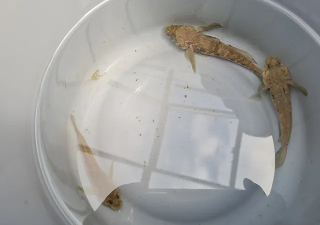 Svartkutling. Selv om man ikke får sett fisken så godt kan man se at den mørke flekken er i fremkant av ryggfinnen.