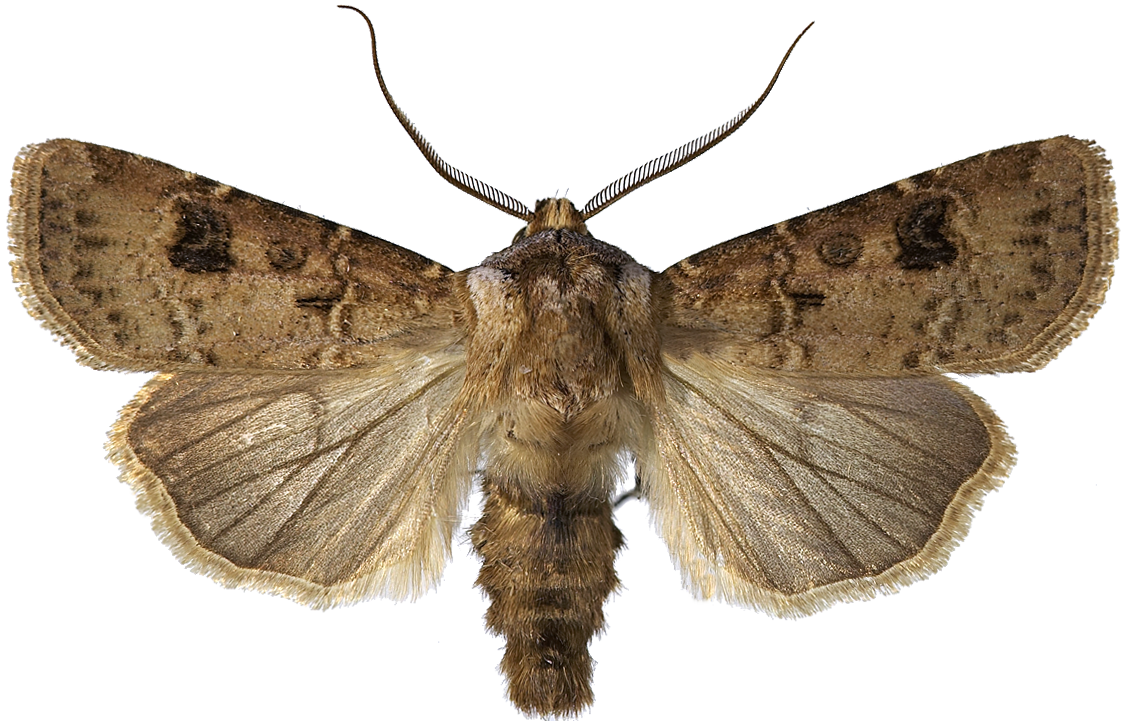 Larven lever på ulike urter. Nattaktiv, skjuler seg i jorda om dagen.