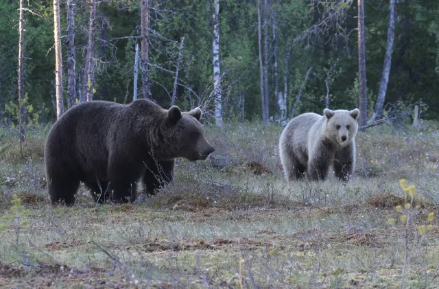 Bjørneungene kan holde seg sammen med mora fra ett til fire år. I løpet av denne tiden må ungene lære seg å jakte og finne mat.