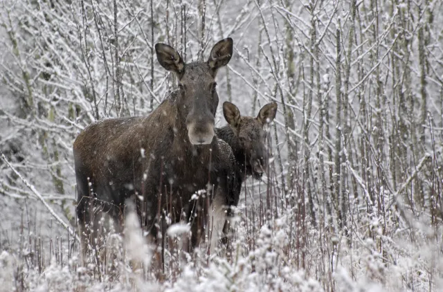 Spor av elg (til venstre) og brunbjørn.