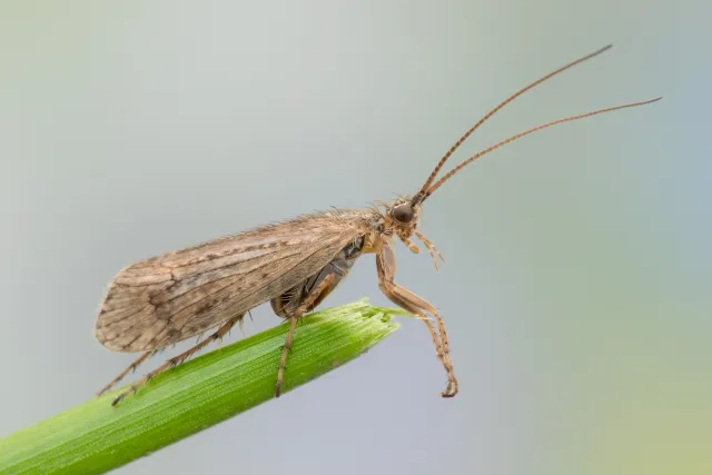 Artene i familien Limnephilidae bygger portable, rørformede hus.