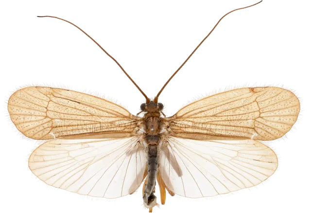 Chaetopteryx villosa er en liten til middels stor vårflue med svært brede, brune framvinger med spredte, stive, utstående hår. Arten hybridiserer med Chaetopteryx sahlbergi, og de to artene kan være svært vanskelige å skille. Chaetopteryx villosa er utbredt over hele landet. Larven lever gjerne på steinbunn i bekker og små elver. Den bygger et svakt buet, portabelt hus av plantedeler og sandkorn.
