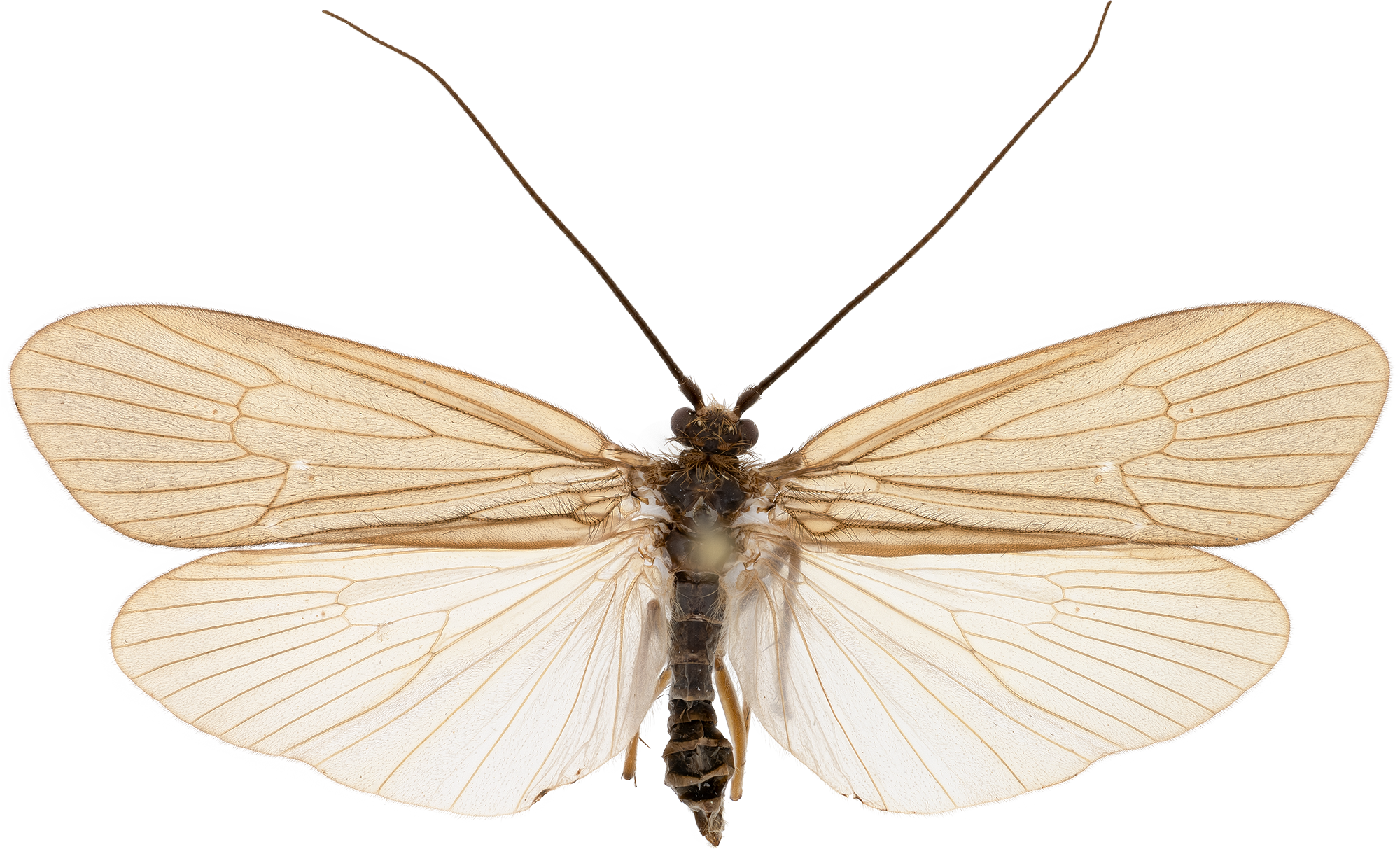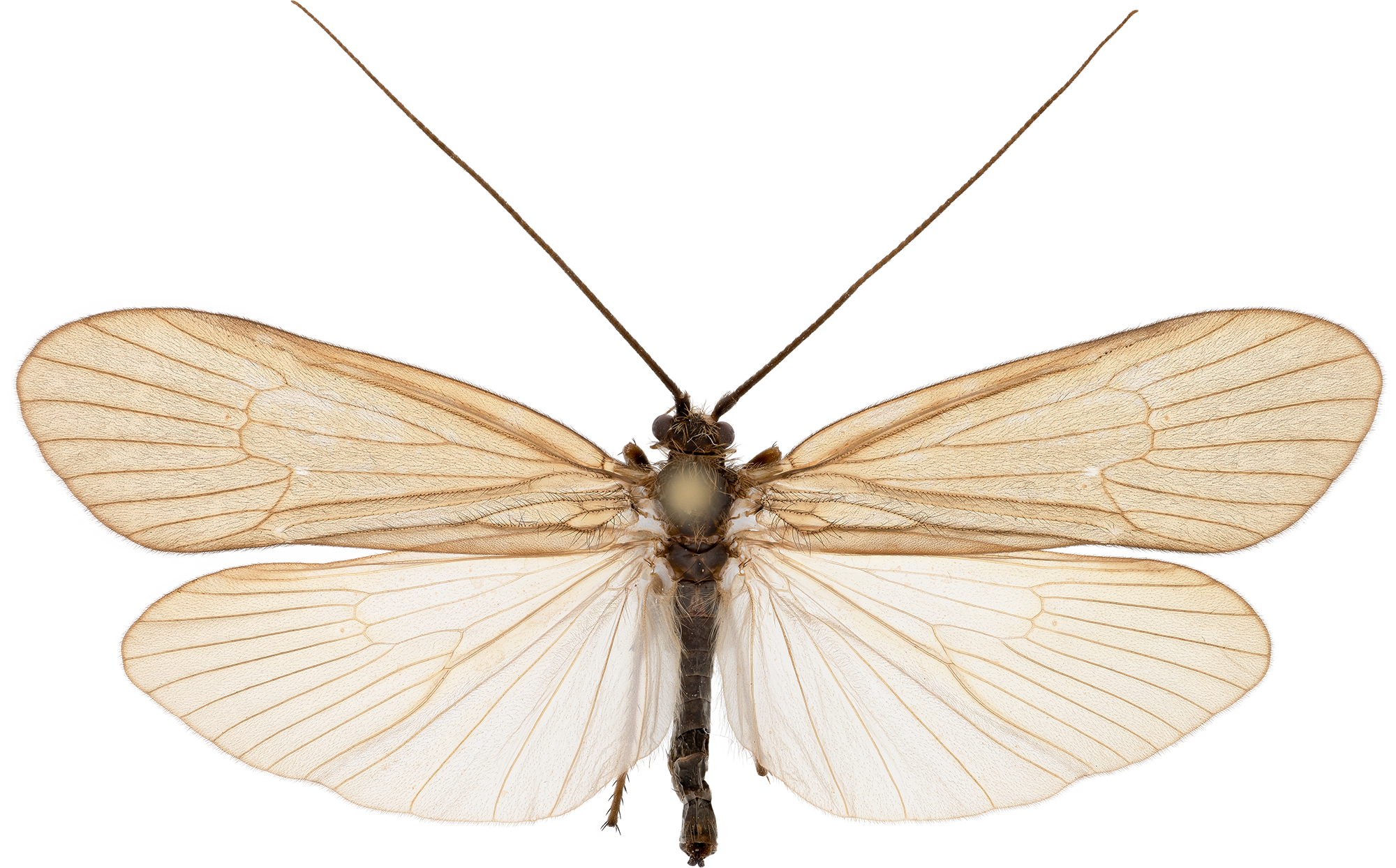 Hydatophylax infumatus er en middels stor vårflue med svært brede, ensfarget brune framvinger. Arten er funnet på det sentrale Østlandet, i indre deler av Sør-Norge og i Finnmark. Den lever blant døde plantedeler i permanente bekker og små elver i skogsområder. Larven bygger et kraftig, portabelt hus av bark, små pinner og barnåler.