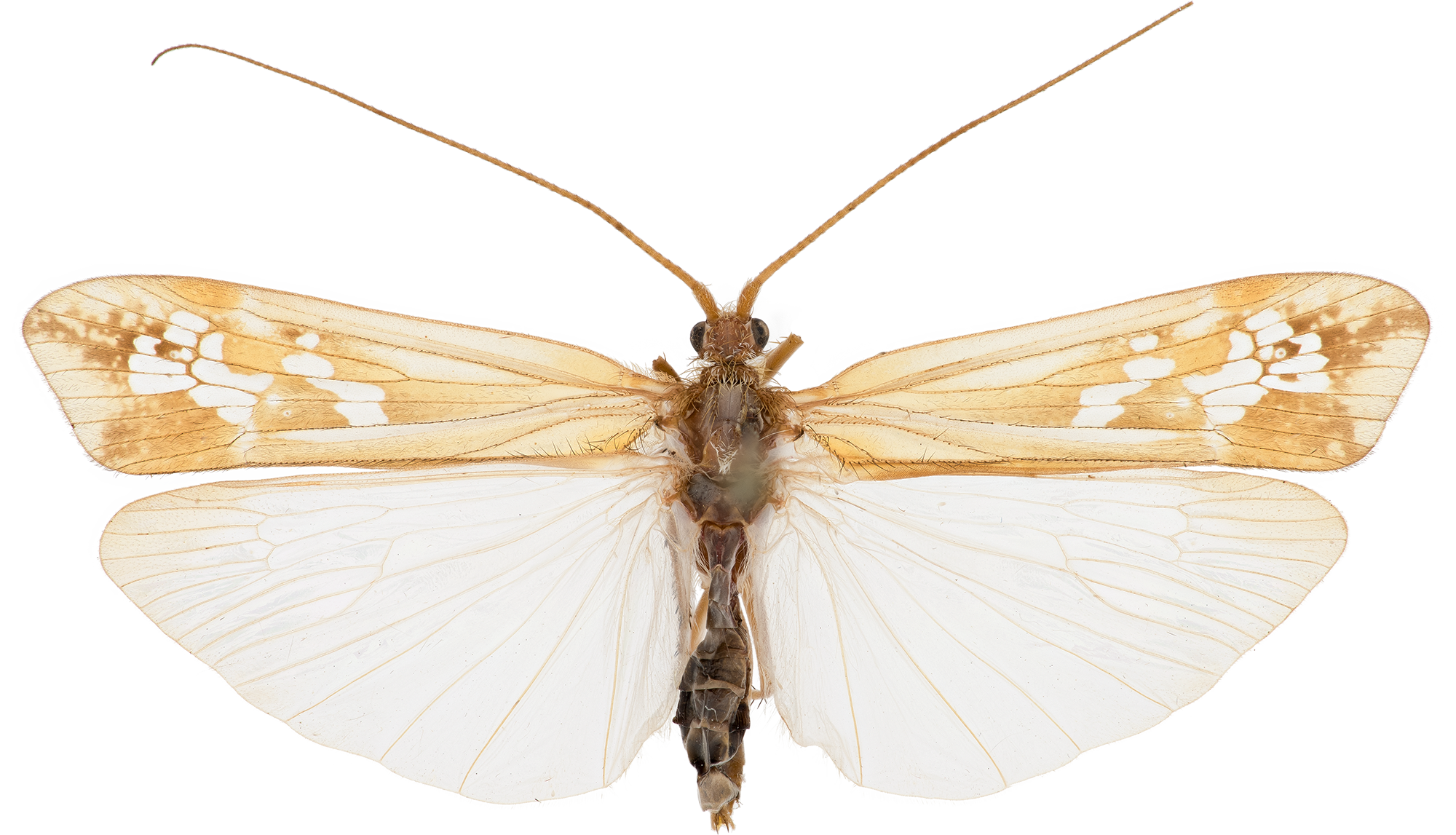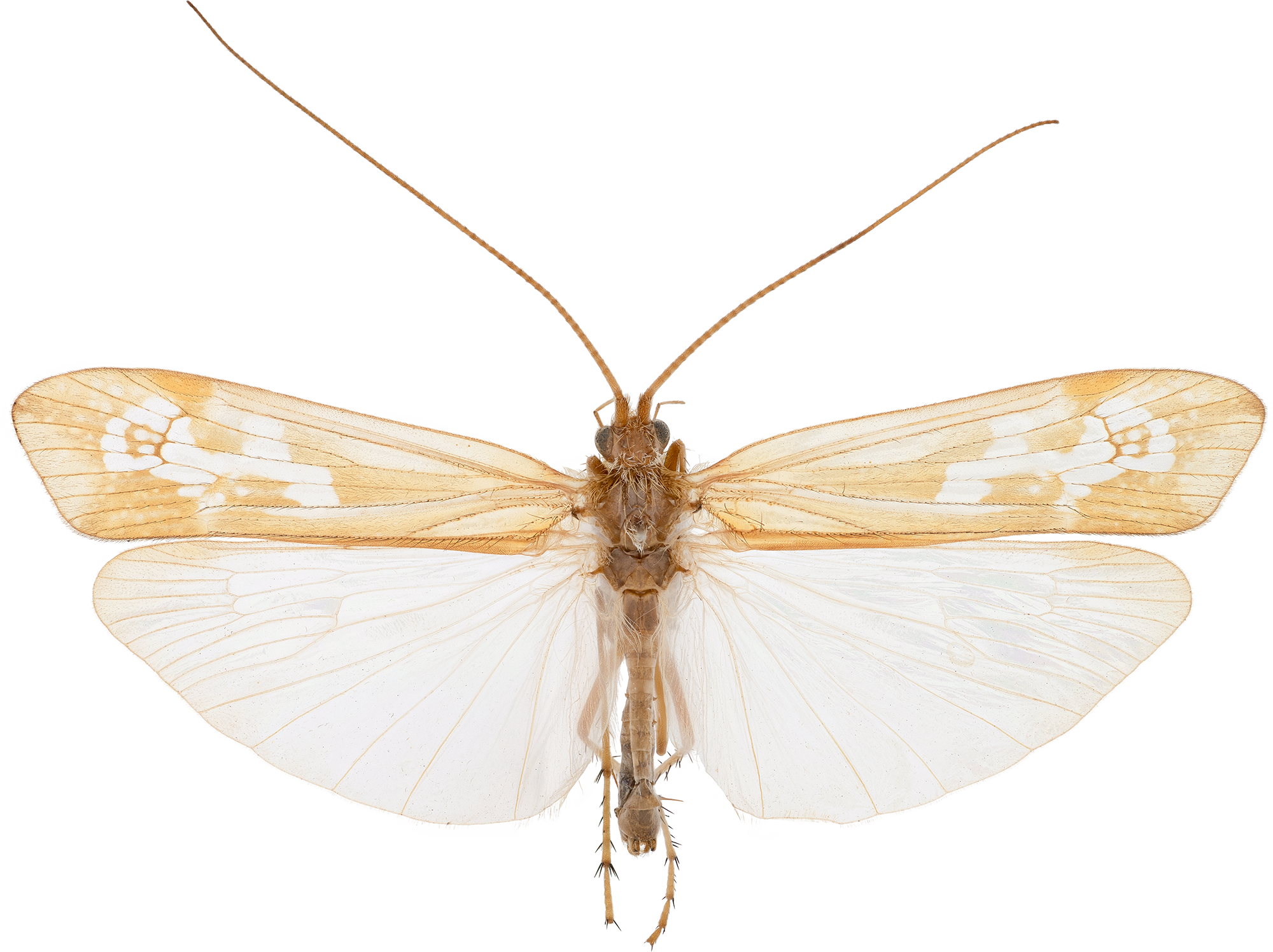 Limnephilus subcentralis er en middels stor vårflue med smale, lysebrune framvinger med hvite og mørkere brune felter, og med et halvmåneformet, lyst parti i ytterkanten. Arten er utbredt på Sør- og Østlandet, i Trøndelag og i Nord-Norge. Larven lever langs breddene av sjøer, dammer, elver og bekker med frodig vegetasjon. Den bygger et portabelt hus av lange, overlappende plantebiter.