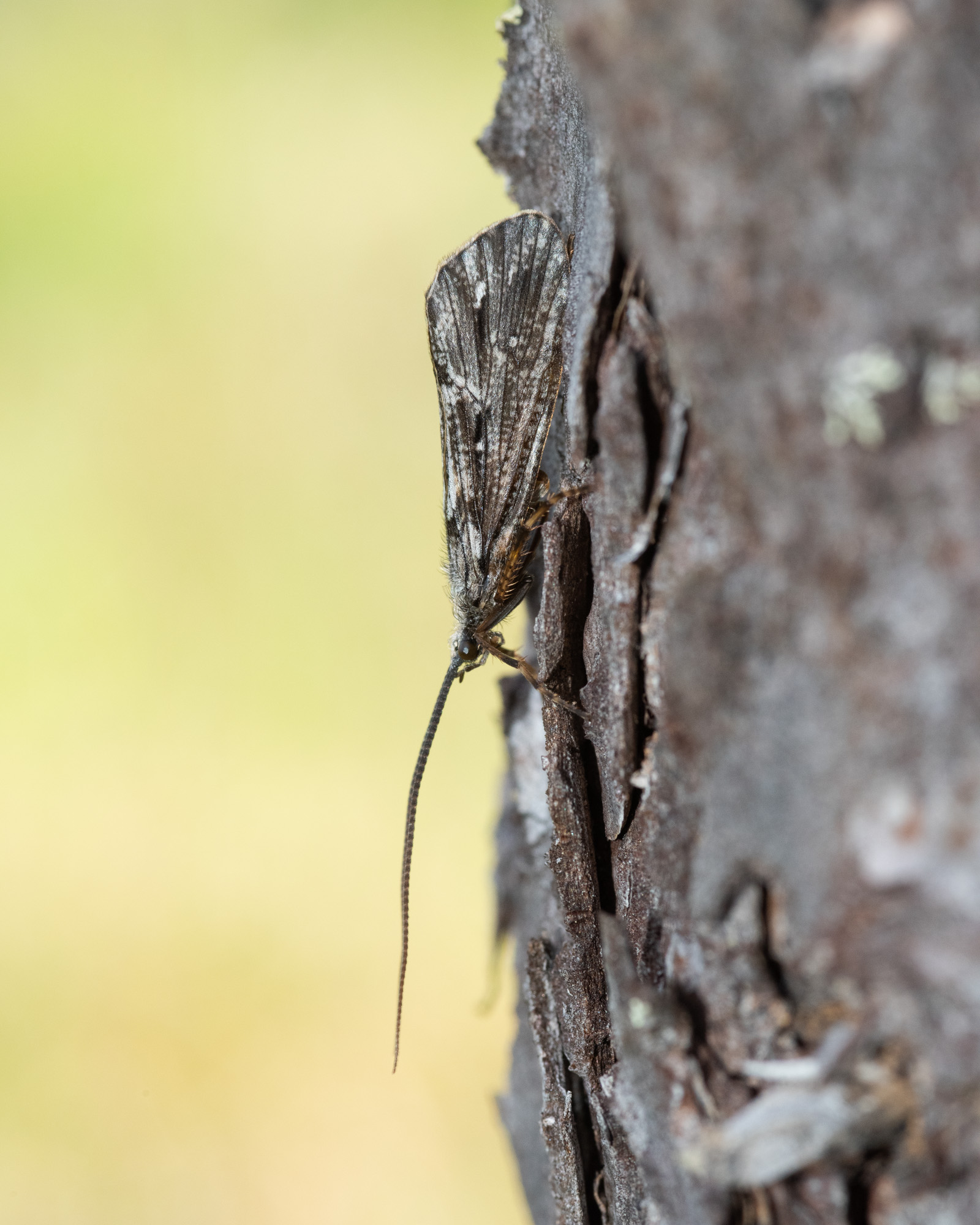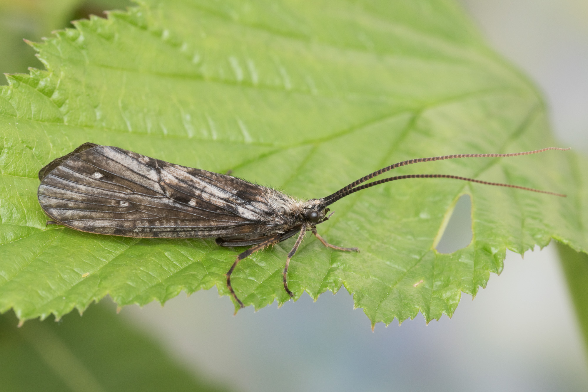Phryganea bipunctata er en meget stor vårflue med brede, grålige framvinger. Arten er utbredt over hele landet. Larven lever i sjøer, dammer og i rolige partier i elver. Den bygger et opptil 60 mm langt, portabelt hus av biter av plantemateriale arrangert i spiralform.