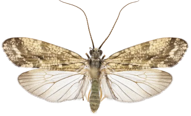 Trichostegia minor er en liten vårflue med brede, spraglete gråbrune framvinger. Arten er funnet på nedre Østlandet og langs Sørlandskysten vestover til Rogaland. Larven lever blant siv og starr, gjerne i temporære pytter, men også i dammer, sjøer og sakterennende elver. Den bygger et rett, portabelt hus av små barkbiter.