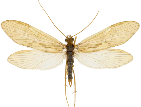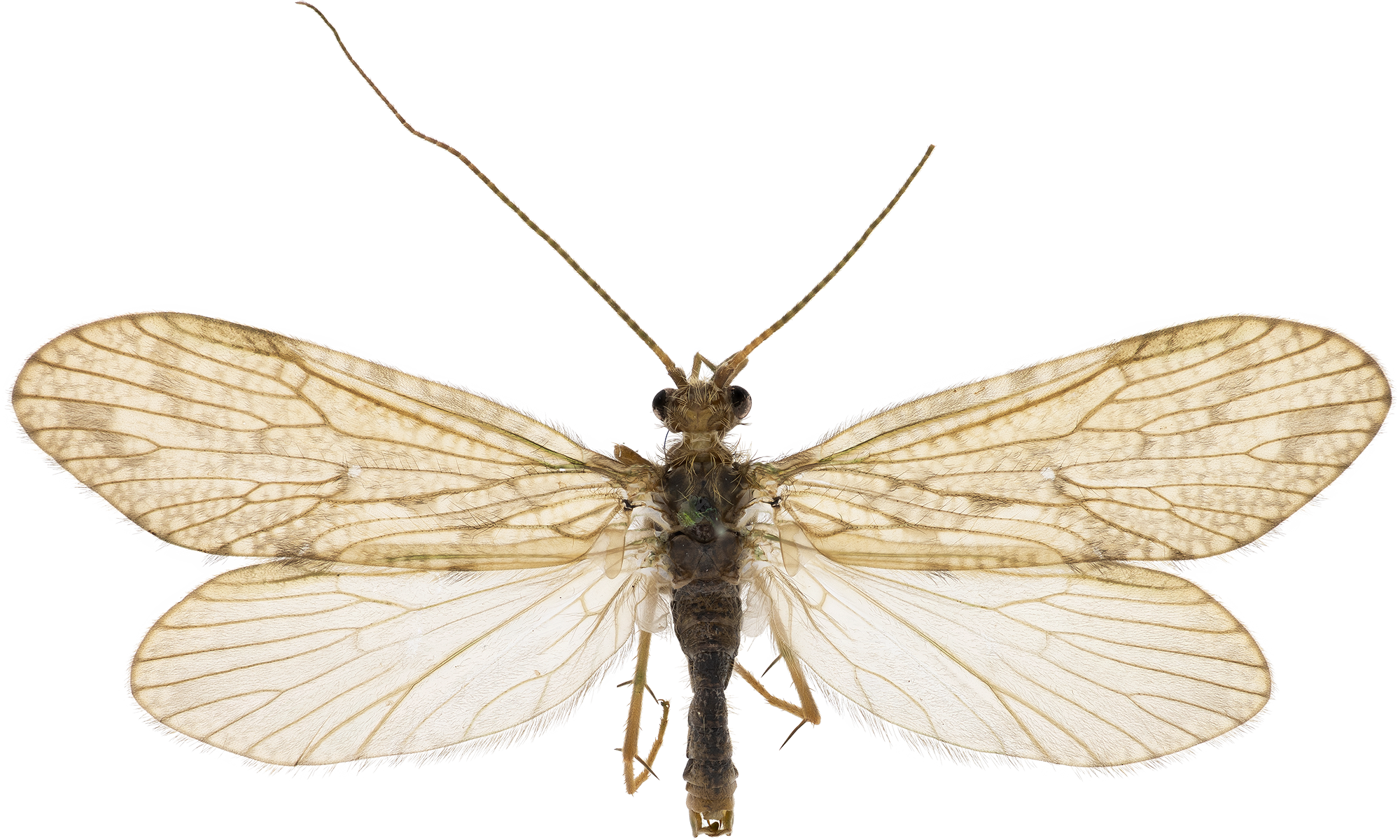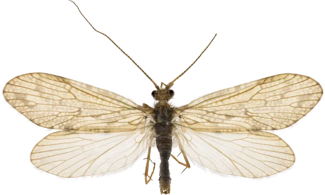 Rhyacophila fasciata er en middels stor vårflue med relativt brede framvinger med tydelig spiss. Grunnfargen er gjerne blekt gulgrå, og bakkanten har en lysere flekk. Arten er utbredt på Sør- og Østlandet og i Trøndelag, og finnes spredt videre nordover til Alta. Larven lever som rovdyr i små bekker. Den bygger ikke hus.