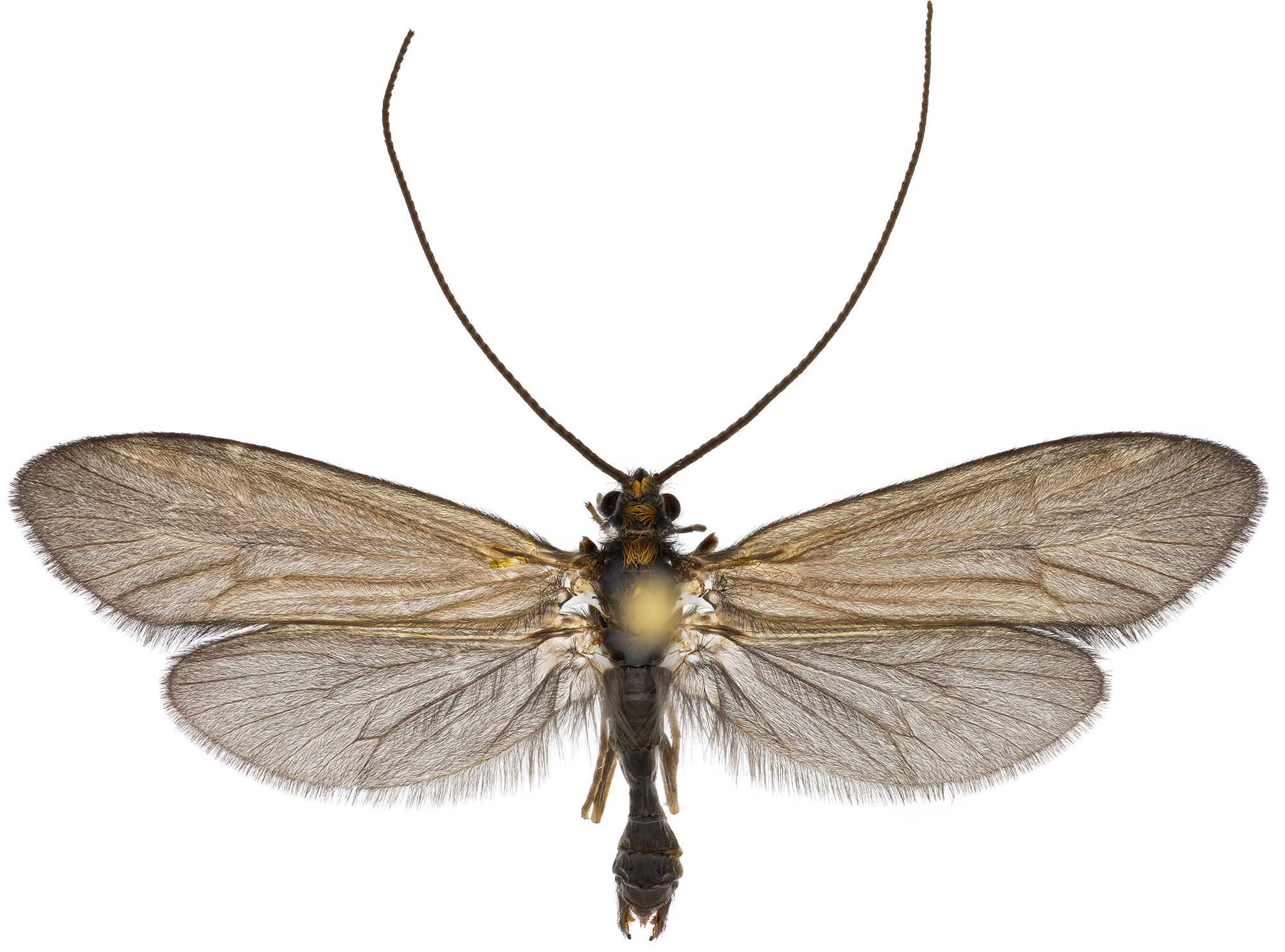 Sericostoma personatum er en middels stor vårflue med middels brede, bronsefargete framvinger. Arten er utbredt over hele landet. Larven lever i små elver og bekker med sandbunn, gjerne gjemt nede i substratet. Den bygger et portabelt, buet hus av små sandkorn.