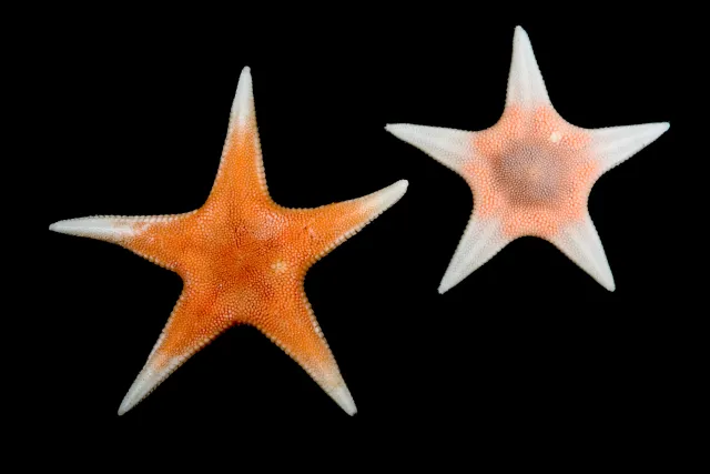 Oransje eller lyserød art med fem armer. Oversiden dekket med piggklaser. Markante marginalplater med små korn, hvorav de øvre platene er kortere enn de nedre. 3 furepigger.
