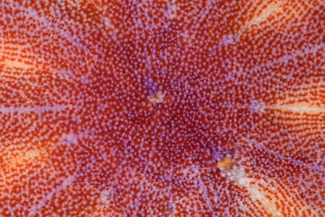 S. endeca: Ca. 6 små pigger i piggklasene på oversiden. 2-3 furepigger. 4-5 adambulakralpigger.