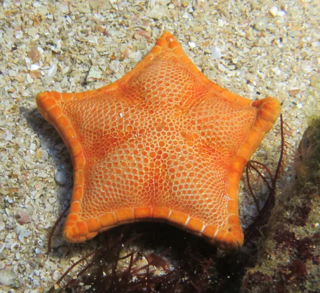 Rødorange eller brunlig art som ser ut som en stor kjeks. Oversiden dekket med små korn. 4-7 furepigger, og adambulakralen med 3-4 rader med pigger per plate. Stor art med stor madreporplate.