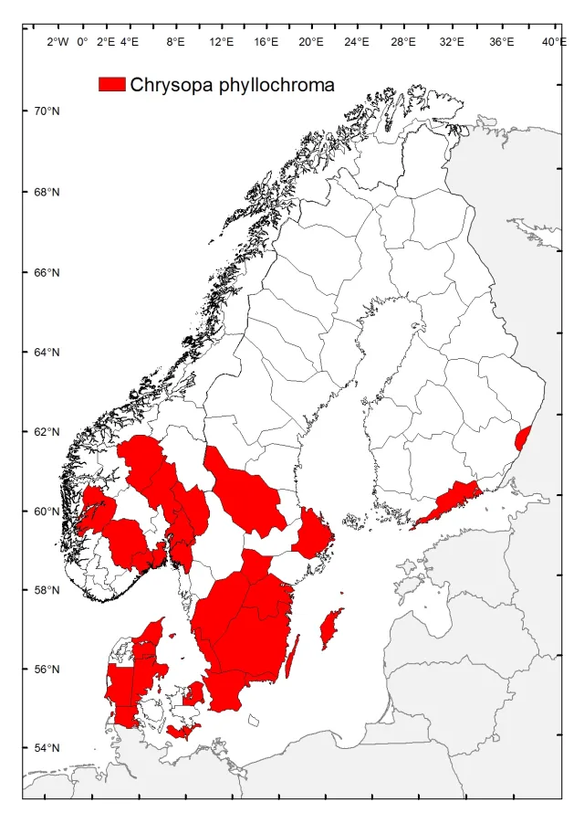 Artsdatabanken: Blakkgulløye Chrysopa phyllochroma Wesmael, 1841