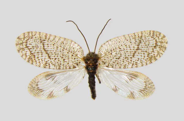 Megalomus hirtus er en uanselig bladlusløve som sjelden tar til vingene, og som derfor lett overses.