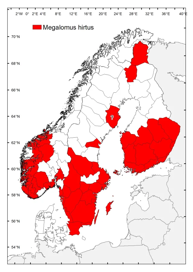 I Norge er M. hirtus utbredt fåtallig nord til Trøndelag. I Sverige og Finland er arten funnet både i sør og nord, mens det er få funn fra områdene derimellom. Arten er ikke kjent fra Danmark og Island, men har ellers en vid utbredelse i store deler av Europa.