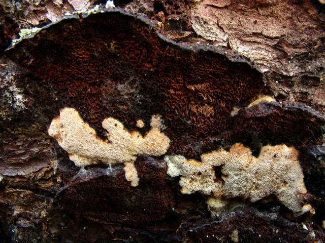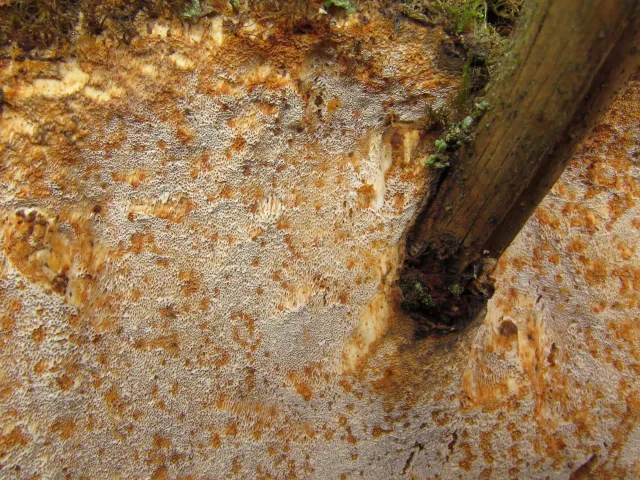 Fjellgrankjuke Skeletocutis chrysella fra Imsdalen i Ringebu kommune.