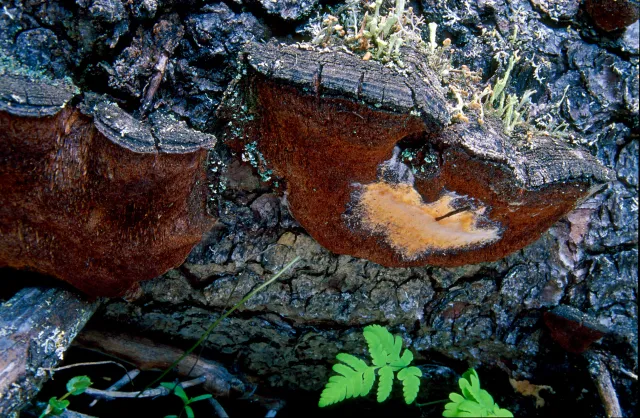 Fjellgrankjuke vokser på morkne granlæger, sammen med granstokkjuke Phellinus abietis.