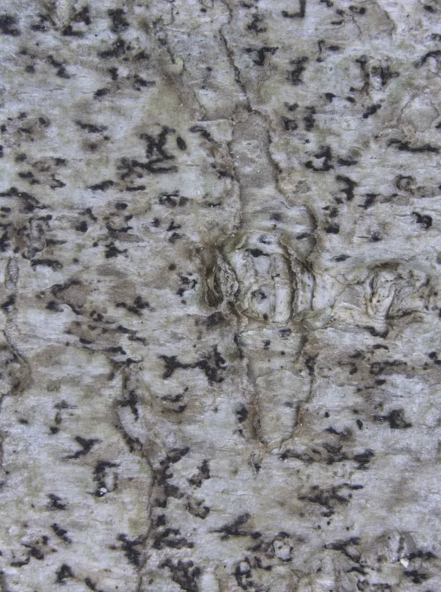Stjerneflekklav Arthonia stellaris samlet på hassel ved Beltestadtjørna nord for Hovdanes i Tysnes (O-L-226339).