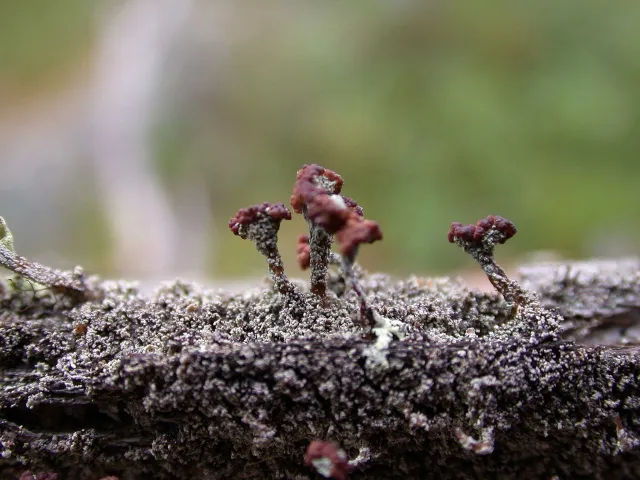 Artsdatabanken: Furuskjell Cladonia parasitica (Hoffm.) Hoffm.