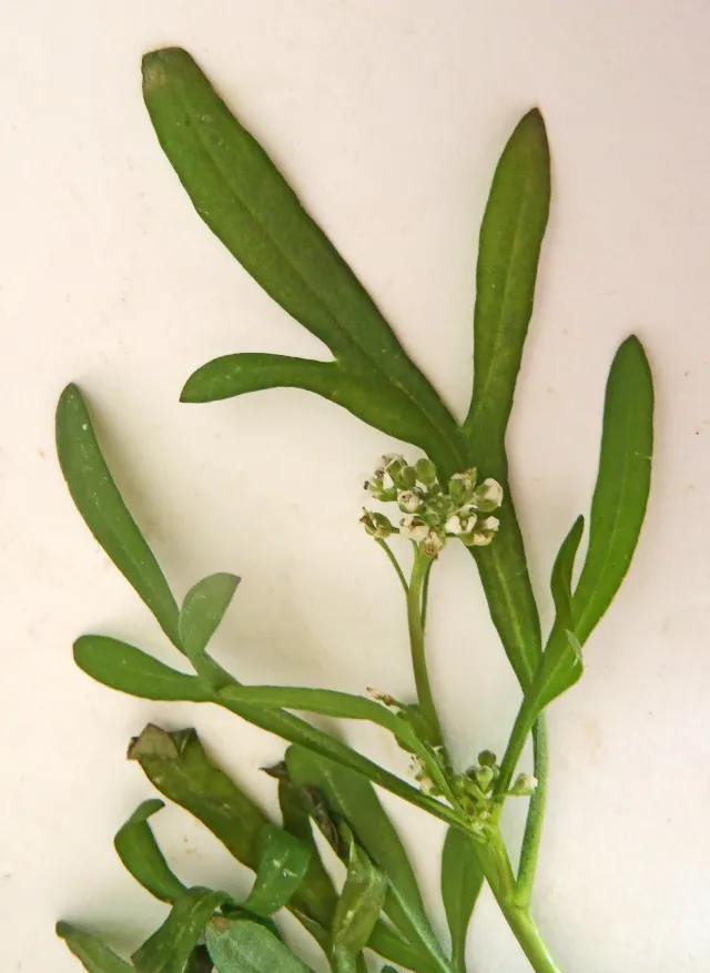 Dei øvre blada er fåflika og sit på lenge (i motsetnad til dei to gonger fjørflika nedre blada som visnar tidleg). Blomestanden er ein klase som strekkjer seg mykje i fruktstadiet. Kronblada er små og kvite, som her, eller bleikraude.