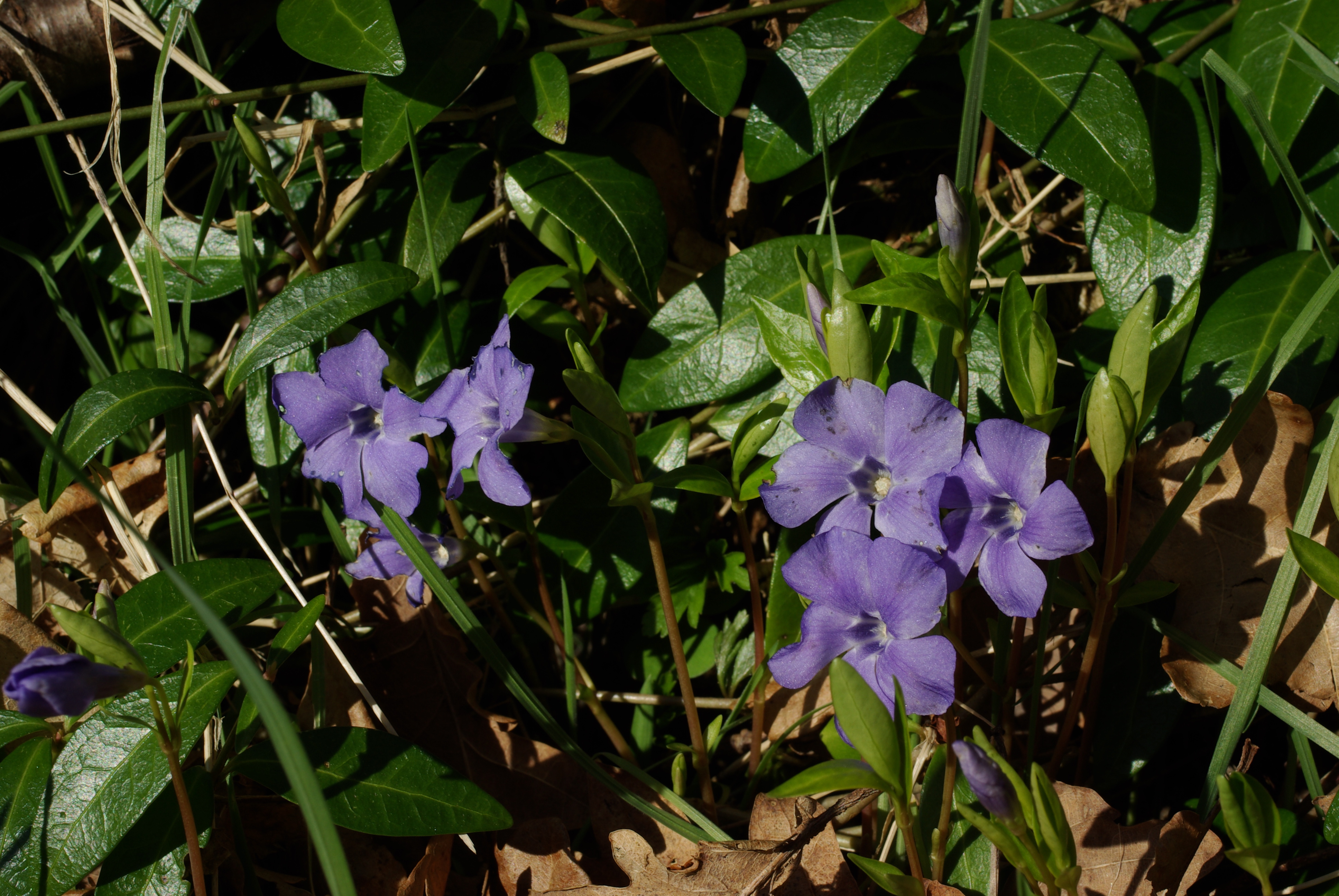 Gravmyrt er en fremmed art som er innført som prydplante. Den er lavvokst og krypende og danner et mørkegrønt dekke på bakken, enten det er i eller utenfor plantinger. Åpne, blå blomster gjør den til et blikkfang.