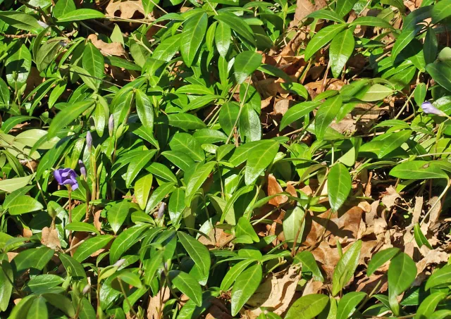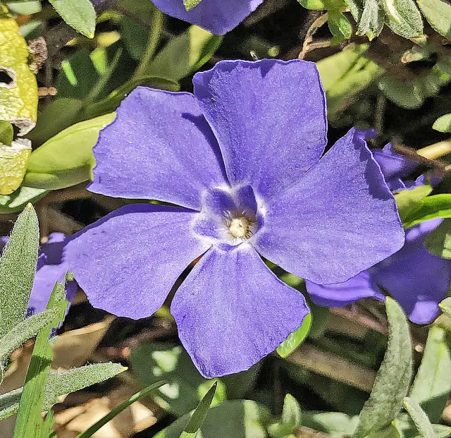 Gravmyrt er en fremmed art som er innført som prydplante. Den er lavvokst og krypende og danner et mørkegrønt dekke på bakken, enten det er i eller utenfor plantinger. Åpne, blå blomster gjør den til et blikkfang.