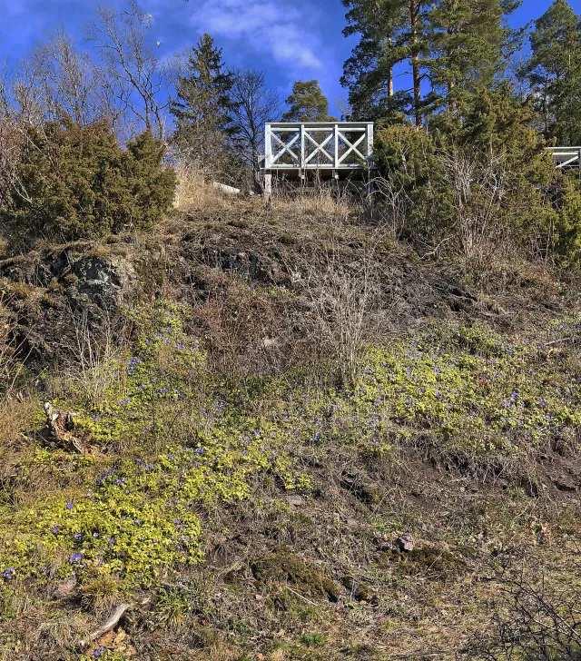 Om våren er gravmyrt særlig lett å få øye på; grønnfargen lyser opp i fjorårets gulbrune planterester. Fra Horten (Vestfold).