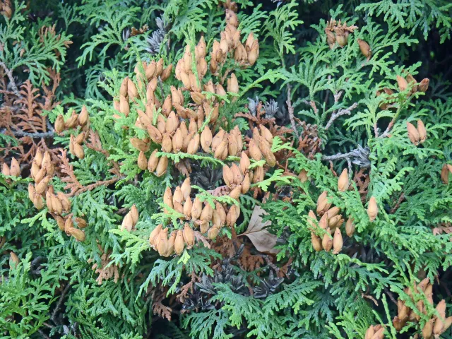 Tuja kjem frå austlege Nord-Amerika og har vore dyrka i Noreg sidan ca. 1870. Arten er særdeles mykje i bruk som hekkplante i private hagar, men får ei finare vekstform som eit frittståande tre. Eit stort antal kultivarar med ulike vekstformer og eigenskapar er utvikla.