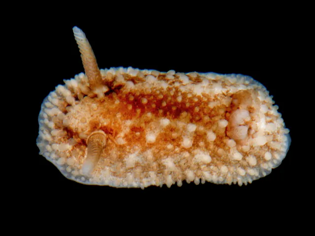 Kroppsfargen er en matt hvitfarge, som har brune mønstre på ryggsiden. Kappetuberklene mangler denne brune pigmenteringen. Rinoforene er som oftest dekket av brun pigmentering, mens gjellebusken har en gråbrun til lys brun farge. Enkelte individer kan være nesten helt hvite.