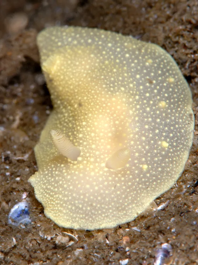 Videoen viser en Cadlina laevis filmet i Irland, på grov skjellsandbunn.