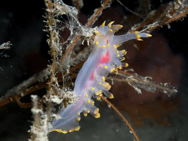 Den gule varianten av Lomanotus genei fotografert i Kosterhavet i Sverige.