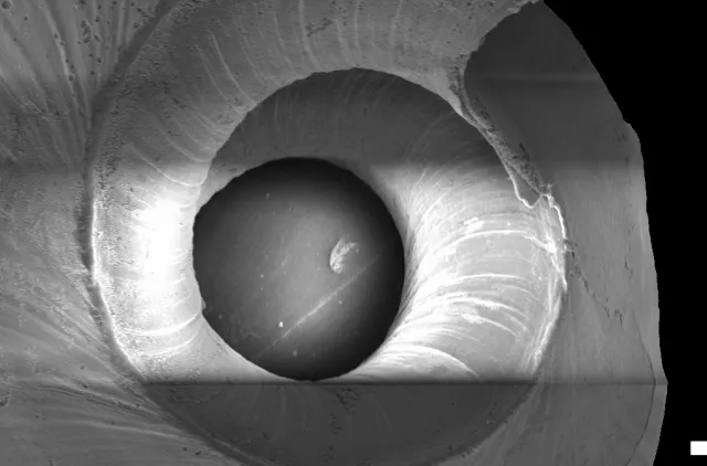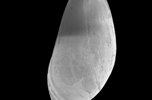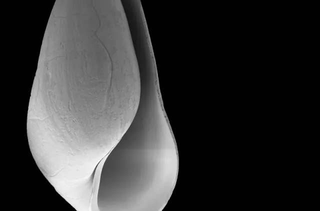 Skallets ventralside (SEM), målestokk = 1 mm.