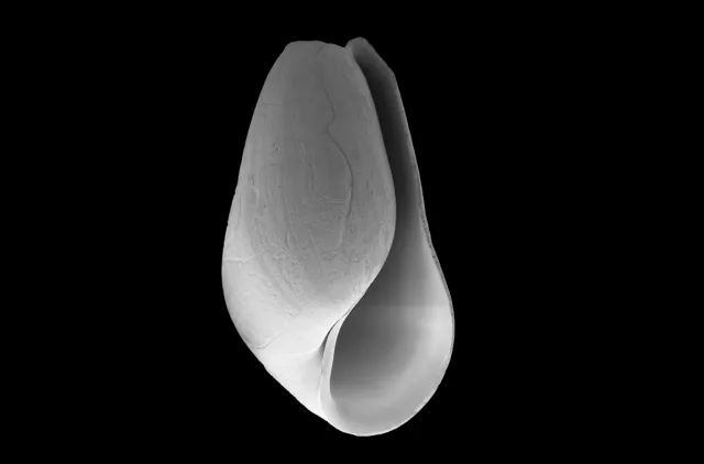 Det tykke skallet er utvendig og hvitt, og som regel med en pærelignende form. Åpningen er smal, og strekker seg hele lengden av skallet. Toppen av skallet (apeks) er sunket. Skallet har en umbilikalkanal (umbilicus). Overflaten har et mønster bestående av vekstlinjer. Denne arten er kun kjent fra skallet. Lengden av skallet varierer mellom 5–5,8 mm.