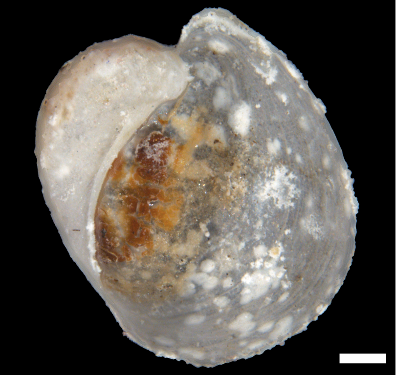 Det tynne skallet er innvendig og gjennomsiktig. Omrisset er ovalt og avrundet sett ovenifra. Åpningen av skallet er stor og kanten er glatt, den øvre delen av kanten bøyer seg jevnt mot toppen av skallet (apeks). Toppen av skallet er sunket inn i skallet. Skallet har en liten umbilikalkanal (umbilicus).  Skallets overflate er glatt men kan ha utydelige vekstlinjer. Man vet ingenting om anatomien til denne arten siden den kun er kjent fra skallet. Størrelsen på skallet er rundt 3,5 mm.
