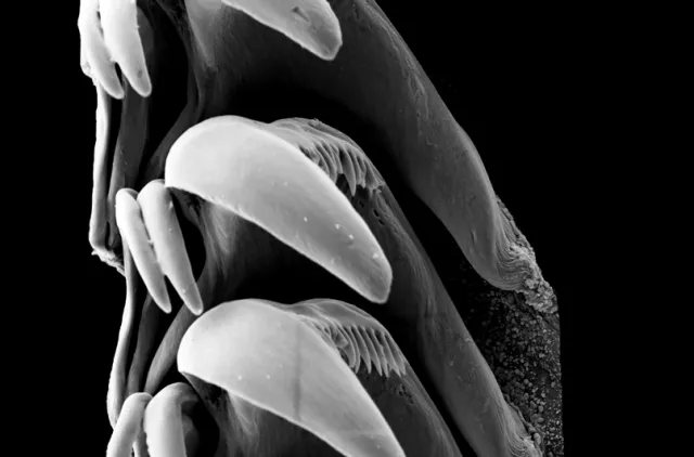 Ventralsiden av den lille uparete kråsplaten og dorsalsiden av det store paret av kråsplatene (automontage bilde), målestokk = 50 µm.