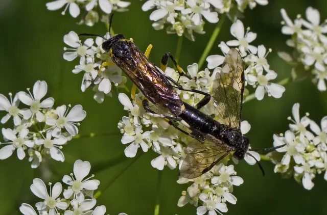 Macrophya montana hunn og hann i paring. Belteviga, Flekkerøya, Kristiansand, Vest-Agder, Norge. 08.06.2013.